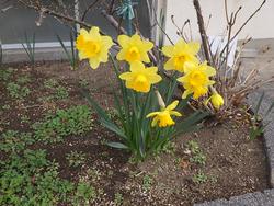 正門脇の花壇のラッパスイセンが、とてもきれいで見頃です。