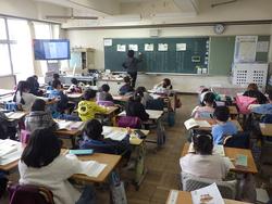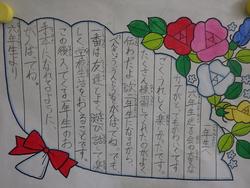 国語の授業を頑張っていました。後ろに6年生からのメッセ―ジが…全クラスに送ったんだそうです。さすが6年生!