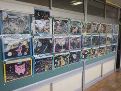 メディアリテラシーの学習中でした。廊下には、カラフルな版画の作品がいっぱい!とても素敵です。