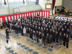 6年間を振り返った呼びかけと「つむぐ想い」「旅立ちの日に」を保護者の皆様に向けて披露しました。