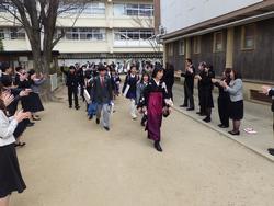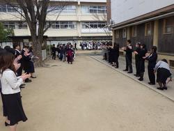 先生方に見送られ、保護者のもとへ… 次のステージでのご活躍を願っています。