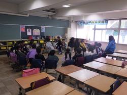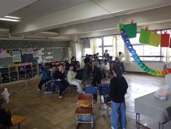 2年生が、4年生に感謝の気持ちを込めてごあいさつ。異学年交流にお世話になったお礼だそうです。