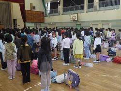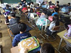 ●写真1枚目…始業式では子どもたちの元気のいい歌声(校歌)が体育館に響きわたっていました。●写真2枚目…始業式が終わり、体育館から教室に向かっています。●写真3枚目…5年生は体育館に残って、学年開きを行いました。