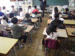 ●写真1枚目…早速、学年目標が発表されました。●写真2枚目…学年開きを終え、教室に向かっています。●写真3枚目…新しい担任の先生の話に耳を傾けています。