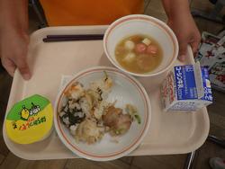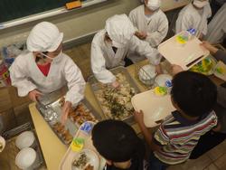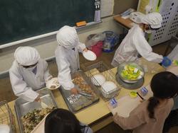●写真1枚目・2枚目…2年生は手際よく配膳し、速やかに給食の準備ができました。1年間の成長を感じます。●写真3枚目…配膳された給食を見せてもらいました。
