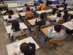 ●写真1枚目・2枚目・3枚目…新年度初めての給食を味わいながら食べました。