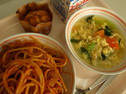 さつまいもご飯は、いもの甘みを感じられておいしかったです。今日は十五夜、まんまるのお月さまを見られるといいなあ。 | まるパンにコロッケを挟んで、おいしくいただきました。チキンパスタスープのパスタの形が、蝶やリボンのようで楽しかったです。 | 大好きな中華丼!たくさん食べられました。わかたまスープは、塩味と甘未が絶妙で、ポップビーンズは食感がよかったです。 | 脂ののったさばのソース煮でごはんがどんどんすすみました。じゃがいもの味噌汁も食べ応えがありおいしかったです。 | ナポリタンは子どもの頃よく食べた懐かしい味でした。たまごスープがあっさりめでナポリタンとよく合いました。 |