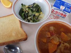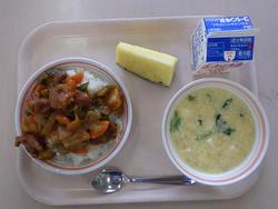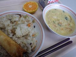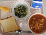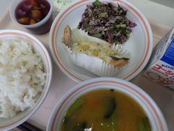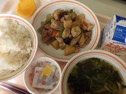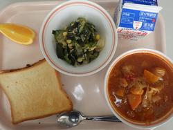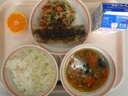 ごはん さんまのオイスターがけきくらげのあえもの やきぶたと野菜のスープ みかん 牛乳 | ごはん なっとう にしめ ほうれんそうのみそしる かき 牛乳 | すぶたどん スーミータン パインアップル 牛乳 | くろごまきなこトースト じゃこサラダ にくだんごトマトスープオレンジ 牛乳 | ごはん さけのマヨコーン焼き ゆかりあえ さつまいもと南瓜のみそ汁 ハロウィンゼリー 牛乳 |