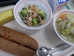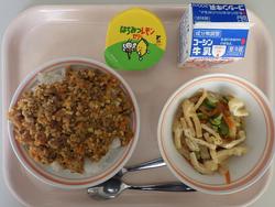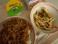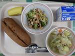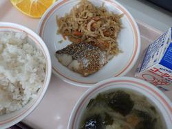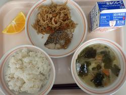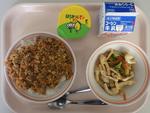 ごはん さわらのピリカラ焼き きりぼしだいこんの煮もの しろみその味噌汁 オレンジ 牛乳 | ピザドック 蓮根チップスサラダポトフ バナナ 牛乳 | 中華まぜご飯 ししゃものしそまきあげ とうふとたまごのスープみかん 牛乳 | ドライカレー こぎつねビーンサラダ はちみつレモンゼリー 牛乳 | |
