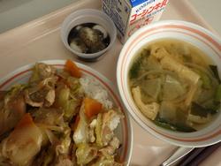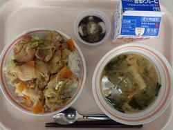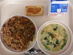 カレー味のパスタで食欲がわきました。スープはポテトが柔らかく食べやすかったです。アップルデニッシュも最高でした。 | いわしはみそ味がよく利いていて、ご飯がよくすすみました。すまし汁もあっさりしていておいしかったです。ごちそうさまです。 | お肉たっぷりのすきやきどん、肉や野菜と一緒にご飯がいくらでも食べられそう。みそ汁の大根もやわらかくておいしかったです。 | ||