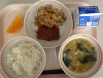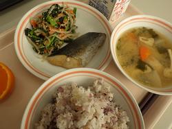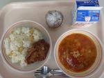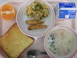 ビーンズカレーパスタ ポテたまスープ アップルデニッシュ 牛乳 | さつまいもおこわ いわしのねぎみそまき やさいのこんぶあえ すまし汁 オレンジ 牛乳 | すきやきどん だいこんとわかめのみそ汁 ごまだれだんご 牛乳 | ガーリックトースト わかさぎのフリッター たまねぎドレッシングサラダ みはや 牛乳 | ごはん なまあげの肉巻き きりぼしだいこん じゃがキャベみそしる ゆめオレンジ 牛乳 |