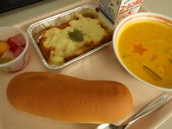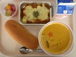 カレー味のパスタで食欲がわきました。スープはポテトが柔らかく食べやすかったです。アップルデニッシュも最高でした。 | いわしはみそ味がよく利いていて、ご飯がよくすすみました。すまし汁もあっさりしていておいしかったです。ごちそうさまです。 | お肉たっぷりのすきやきどん、肉や野菜と一緒にご飯がいくらでも食べられそう。みそ汁の大根もやわらかくておいしかったです。 | バターとにんにくのよく利いたトーストが熱々のクリームスープによく合いました。トーストは家でも作ってみたいです。 | 肉巻きにバーベキューソースがよく絡んでおいしかったです。きりぼしだいこん、みそしるでおなかいっぱいです。オレンジが激甘! |