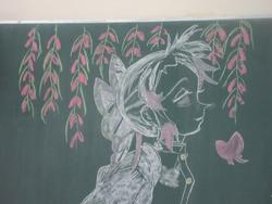 今日が始業式前の最終日でした。みんなを気持ちよく迎えられるように先生方も掃除をしてくれています。そして黒板には・・・担任の先生からのメッセージが描かれていました。6日の始業式、元気に登校してきてください!待っています!