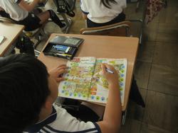自分のタブレットの電源を入れて、パスワードを入力する。更にはQRコードの読み込みまでやっていました。覚えも早く、びっくりしました。これから授業でどんどん活用してください。