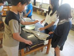 実験後はみんなで後片付けです。テーブルのまわりが水浸しになっていたグループもありましたが、何があったのか・・・。その後はノート、ではなくタブレットを開いて実験の様子をまとめていました。