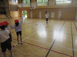 高学年が低学年に声をかけながら、みんなでボッチャを行っていました。白い球にいかに近づけるか、これがとても難しいです。力加減を考えながら取り組んでいました。