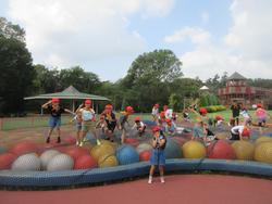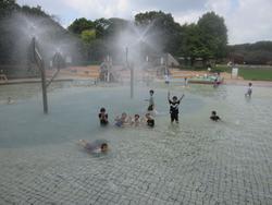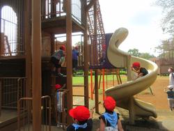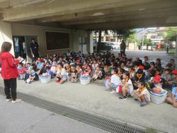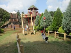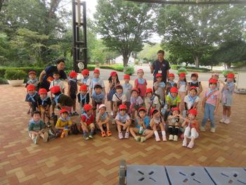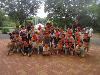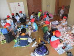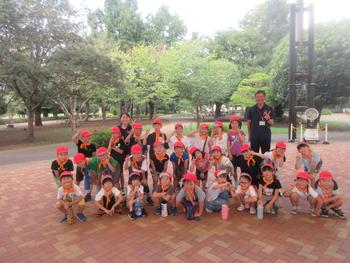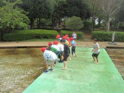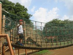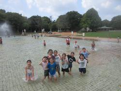 午前中は主に遊具と水遊びで楽しみました。真夏ほどではありませんが、ムシムシした暑さがあったので水遊びも気持ちよさそうでした。遊具の方は、学校の校庭の遊具とは違い、とても大きなものだったので、たっぷり遊ぶことができました。