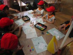 お昼は園内の「子ども美術館」のなかでいただくことができました。冷房がきいていたので、涼しい中で美味しいお弁当を食べることができました。