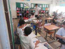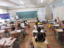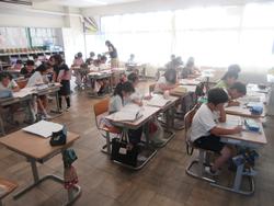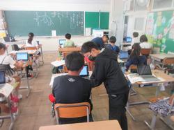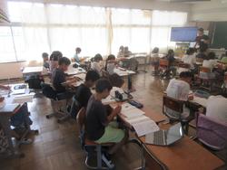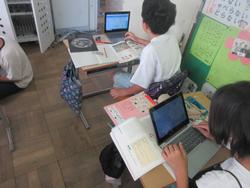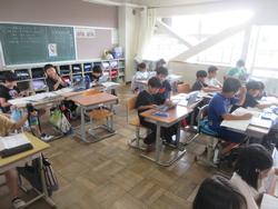 静かな授業ですが、全員がタブレットに向き合っているかというとそうでもありません。教科書・ノートで黙々と学習を進めている子もたくさんいます。1学期に比べて、自分で学び方を決めて進めている子が多くなったような気がします。もちろん困ったときには友だち同士で助け合う姿もあります。