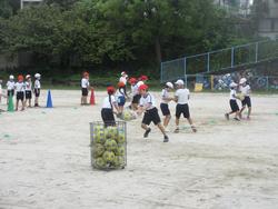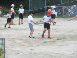 3年生のもう一つのクラスでは校庭で「体つくり運動」に取り組んでいました。新聞紙の上にボールをのせて、2人で運びます。急いで体を動かしてもだめですし、一人で勝手に動くこともだめです。動きや力の加減を調節しながら運動します。スムーズに動けたときは、本当に嬉しそうな表情を見せてくれました。