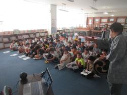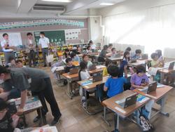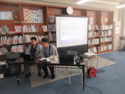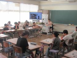 体育館が工事中のため、各教室でオンラインによる紹介となりました。地元の素晴らしい文化に触れることはめったにありません。子供たちはパンフレットを片手に真剣に話を聞いていました。