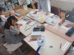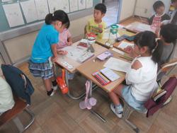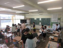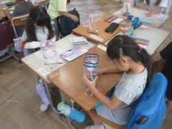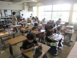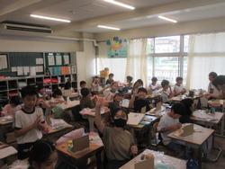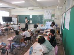 自分でつかまえたバッタなどの虫の観察を行っていました。プリントには絵と言葉で観察した記録を残しておきます。私が教室に入ると多くの1年生が虫アピールをしてくれました。みんな虫が大好きなんですね。
