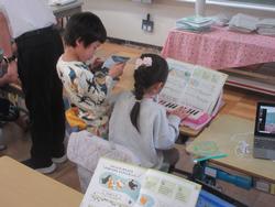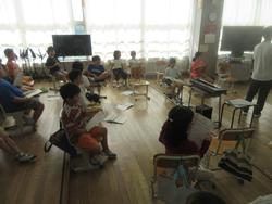 先週に引き続き鍵盤ハーモニカの授業です。動画撮影も行っていますが、今日は各自で用意したイヤホンもありました。撮った動画をイヤホンつけて音付きでチェックしています。自分の動画を見ながら(聞きながら)、もっと上手くなるように練習を繰り返していました。