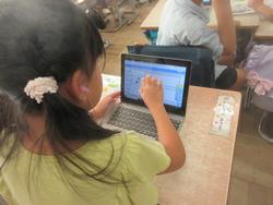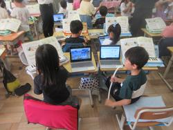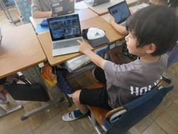 道徳においてもタブレットは活用できます。今日は学校の帰り道に寄り道をしたことがあるのかないのかということをタブレットで表現していました。と言っても、言葉での表現ではなく、タブレット上に「○」のマークがあり、その「○」を「(寄り道)あり」「なし」の方に画面上で動かすだけです。みんなの前での発表が苦手な子もこれなら大丈夫でした。