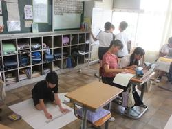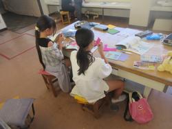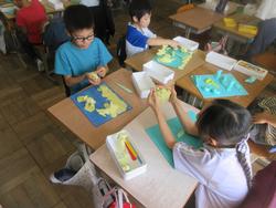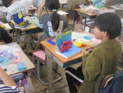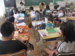 作品がそろそろ完成しそうな段階です。以前も紹介した自分の好きな本の一場面を立体的に表現しています。「校長先生、見て!」と子供たちの力作をたくさん紹介してもらいました。早くお家の人にも見てもらいたいですね。