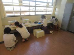 ミシンを扱う授業です。ほとんどの子がミシンを使うこと経験もなく、苦戦していました。それでも、友だち同士で教え合う姿は立派でした。手縫いをしているグループでは、だいぶ慣れた手つきで作業を進めていたので、これまでの学習が身についてきたと思います。