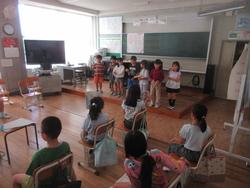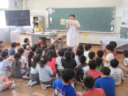 2年生の話題をもう一つ。給食直後に食育に関する絵本の読み聞かせがありました。バランスの取れた食事はとても大切です。それを栄養教諭による読み聞かせで伝えることができました。給食でも各家庭でも、バランスの良い食事を心掛けてください。