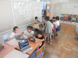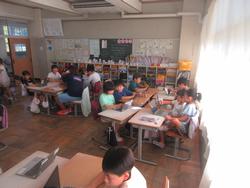 6年生の次週の様子です。と言っても、いつものタブレットを活用した授業を進めています。図書室では、それぞれの課題を自分のペースで進めています。もっと驚いたことが、全く話し声がしないことです。そして午後は算数に取り組んでいます。これは本当にいつも通りです。必要に応じて仲間と学習を進めることもできました。