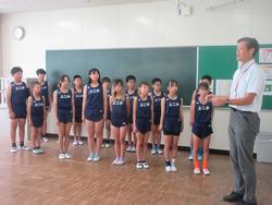 部長からは「諦めない。」という言葉、児童会代表からは「楽しむ。」そして私からは本番までの準備をしっかりするようにと話しました。引き締まった選手の表情がとても印象的でした。10月8日、運動公園の陸上競技場で自己新記録を目指して欲しいと思います。