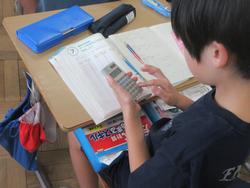 子供たちが手にしているのはタブレットではなく、電卓!25個ぐらいのデータ(数)を足し算して、平均を出していました。たくさんのデータがあると、どこまで足したかわからなくなることがあります。こういう地道な作業を正確に行うことも大事だなと私は感じました。