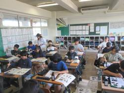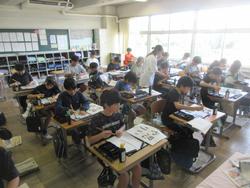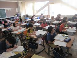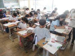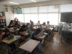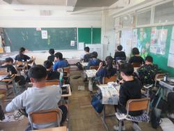 「思いやり」という4字の毛筆の授業でした。漢字と平仮名の大きさに気をつけて取り組んでいる子が多かったです。毛筆で1字1字丁寧に書くという時間、心も落ち着く、素敵な時間だなと感じました。中学校に行ったら、なかなか取り組めないかと思います。小学生のうちにじっくり味わって欲しいと思います。