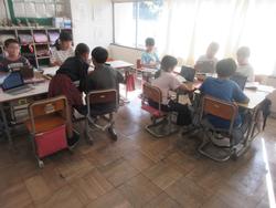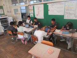 1組2組ともに新聞作りを行っています。グループで1枚作ったり、個人で作ったり。また、タブレット上で仕上げたり、B4の紙面で仕上げたり。更には記事にするために検索をしながら調べたり、formsでアンケートを作成して仲間の意識調査をしたり。いろいろな方法がある中で子供たちが自分で選択して取り組んでいます。