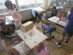 おもちゃ作りをしています。イメージしたおもちゃの完成に向かって、頑張っていました。動画を見ながら作成したり、友だちからアイデアをもらったりしながら進めています。完成すると、やはり試してみたくなります。「どうしたらもっと楽しめるか?」という視点もあり、もの作りの面白さを味わっていました。