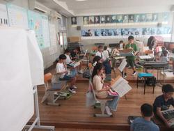 林間に向けて、5年生が動き出しました。一泊二日の日程について、スライドを使って説明をしっかり聞いている5年生です。私のことを見ると「火の神!」という子供たち・・・。キャンプファイヤの事だと思いますが、一部の5年生は、この1ケ月は私のことを「火の神」と言うそうです。