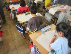 一昨日行ったヤオコーへの見学をもとに、報告文を作成していました。お店の中で一生懸命とっていたメモから、報告文にします。びっしりと書かれてあるメモにもびっくりですが、そのメモから特に重要だと思うところに色鉛筆で線をひいている子もいました。何を一番報告したいのか、考えながら進めていました。