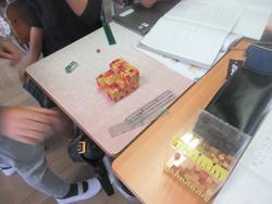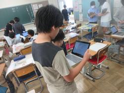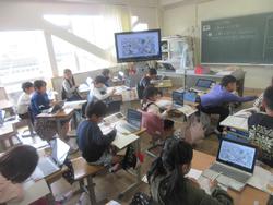 複雑な形の体積を求める学習をしていました。タブレットを使うだけではなく、小さいブロックのような物を使ったり、模造紙に自分の考えをまとめたり、友だち同士で考えたり、いろいろな学び方の中から自分で選択しています。「正解を求める」以上に、「方法をたくさん知ること」の方が、いろいろな問題に対応できそうです。