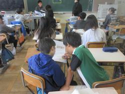 「あなたはどっち派?」ということで、織田信長と豊臣秀吉の比較をしていました。自分なりの考えを1枚のシートにまとめて、友だちと意見の交流を行っています。パッと見ると、織田信長派の方が多いような気がしました。思いを伝え合っているので、みんな楽しそうです。