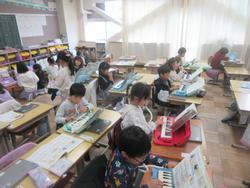 「こいぬのマーチ」の曲を鍵盤ハーモニカで練習していました。友だち同士で、一人で、自分で選択しながら頑張っていました。今日から始まった学校公開で、来年入学するかわいいお客さんもいました。カッコいいところを見せられたかな。