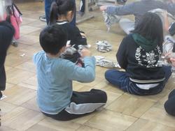 「話を聞く」ということをメインのテーマとして授業が展開されました。新聞紙を使って、破いてみたり、丸めてみたり、いろいろな活動を行いました。先生が話をするときには、何も持たずに集中することもできました。