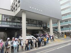 まずは市民会館にあるプラネタリウムを歩いて目指しました。前日、歩き方の練習を行い、基本は「2列!」、道が狭いところでは「1列!」、信号手前では「臨機応変!」とリーダーさんのかけ声で列が次々と変わり、安全に移動することができました。