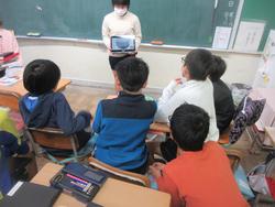 タブレットを使って、足し算の問題にチャレンジしていました。子供たちはゲームをクリアするかのように、次々と問題を解いていきます。自然に友だち同士で学び合ったり、助け合ったりする姿も見られ、とてもうれしかったです。