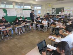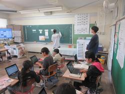 今日は朝から、他校の見慣れた先生が研修として来校しています。昨年度、4年担任として1学期まで本校に勤務していた先生です。1年以上たって、久しぶりの再会でした。5年生は成長した姿を見せられたかな? もちろんいろいろな先生の授業を見て、しっかり研修もしていました。これからも頑張れ!S先生