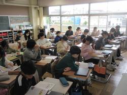 2つのグループに分かれて、一人のプレゼンを聞いています。太陽の一生や月と人類の関わりといった内容についてです。少し難しい説明部分もあり、聞いている子ども達は「?」という雰囲気もありましたが、真剣に聞いています。明日からの修学旅行を控えている6年生です。様々なものに触れて、たくさんの「?」をいっぱい見つけて欲しいと思います。その「?」がこれから先の人生をより豊かにしてくれるかもしれません。