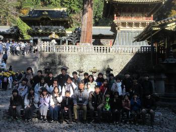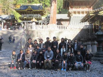 東照宮でのクラス写真です。かなり混雑していましたが、短い時間の中で世界遺産に触れることができました。