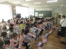 1年生も発表会に向けて、学年みんなが集まって練習しています。合奏の発表もあるようです。練習の中では、演奏が終わった後の態度や発表会での動きも確認しています。入学式の頃とは全く違って、大きく成長している1年生です。
