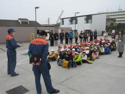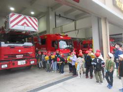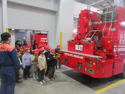 いろいろな種類の車両について、細かく説明していただいたり、質問に答えていただいたり、消防署のみなさんが温かく対応していただきました。その中で防火衣を素早く着用するために着やすいように事前に準備しておくことも教えていただきました。やはり何事も準備が大切ってことですね。市民の安全を守る消防署のはたらきについてたくさんのことを学ぶことができました。中央消防署のみなさん、ありがとうございました。